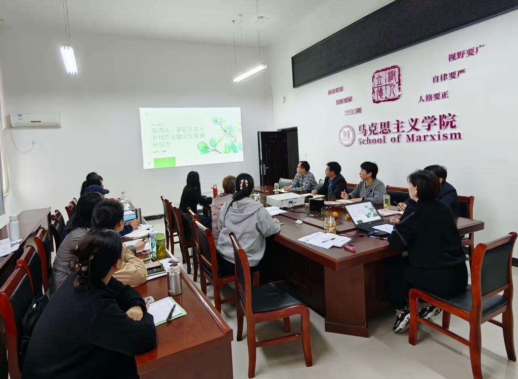 汇报会上,4支调研团队的老师,分别以《张湾区、茅箭区部分乡村产业融合发展调研》《弘扬三大精神 凝聚支点建设强大精神力量》《深入推进抓党建促乡村振兴研究——基于郧西县涧池乡下营村等 8 乡村的调查研究》《地理标志产品赋能乡村振兴路径研究 ——以“井冈山”品牌为例》为主题开展交流。汇报教师紧紧围绕汇报主题,将课题开展的过程、教学科研转化成果以及工作的反思进行了交流。