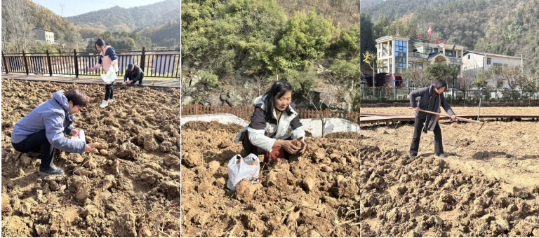 田间体验:挖红薯里的农耕智慧。在基地的生态农田里,老师们手持铲子,化身“农夫”,在松软的土地中探寻红薯的踪迹。老师们脸上洋溢着丰收的喜悦,纷纷展示自己的“劳动成果”。